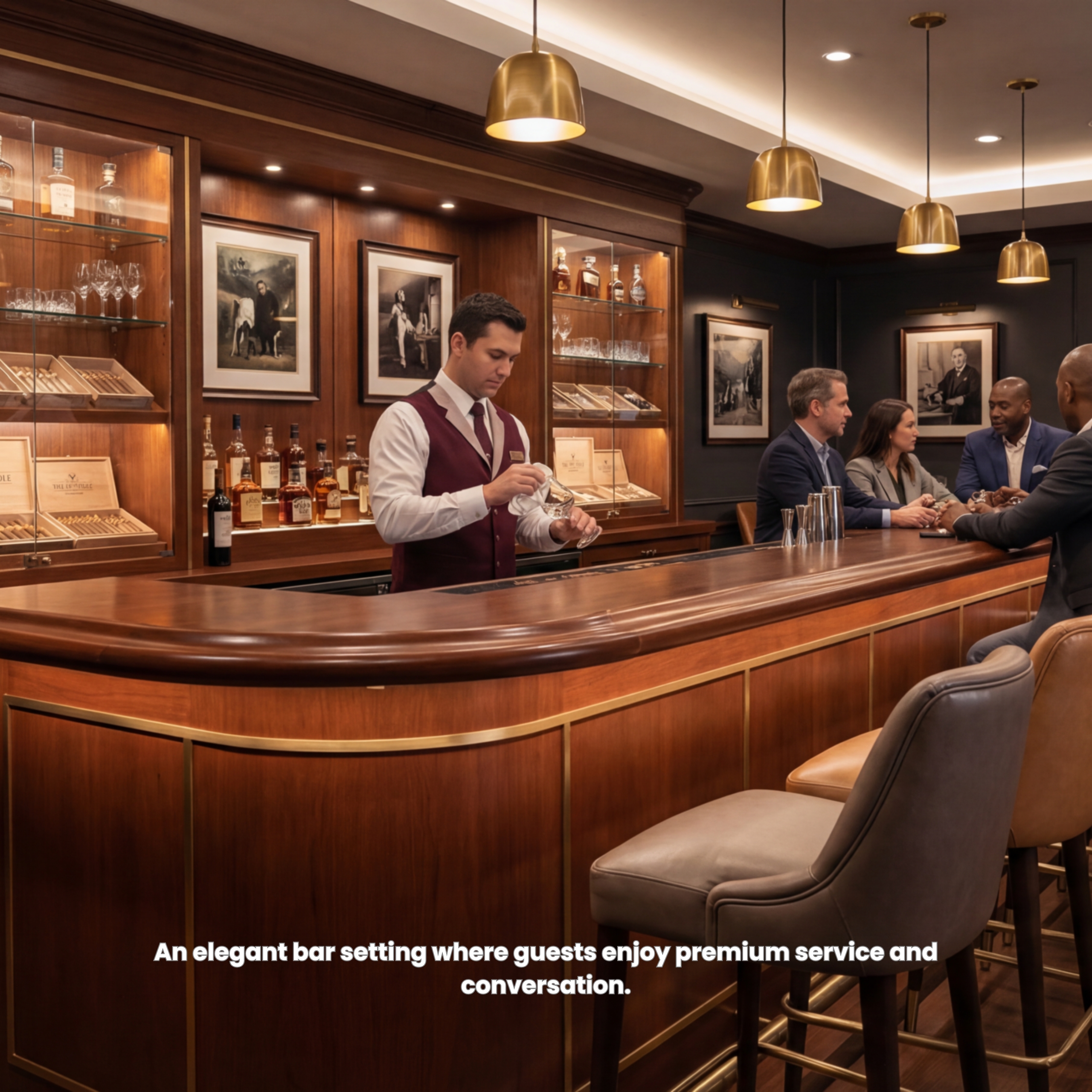 Curated cigar collection and a handcrafted bar for refined tastes.