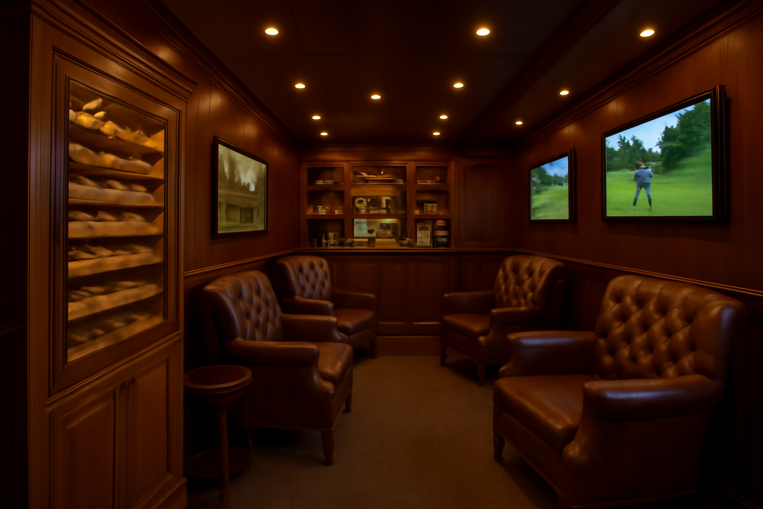 The 19th Hole brings the prestige of a luxury cigar lounge directly to the course. With warm wood finishes, soft lighting, and comfortable seating, it creates a refined atmosphere where members, golfers, and sponsors can unwind, celebrate, and connect after the final putt.